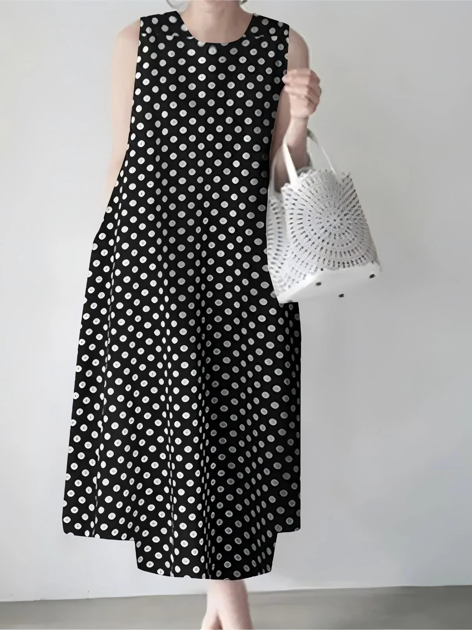 Elegant Polka Dot Sleeveless A-Line Midi Dress